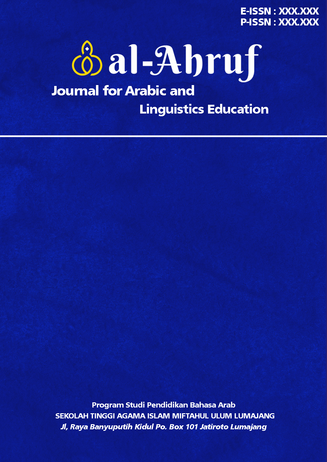 Al-Ahruf (Journal for Arabic and Linguistics Education) is a journal examines various issues related to Arabic language learning, particularly in the context of schools, Islamic madrasahs, and pesantren. This journal serves as an important platform for discussing and sharing knowledge about Arabic language teaching methods, curriculum development, understanding of Arab culture, Arabic linguistics and literary language, and other relevant topics in Arabic language education.
